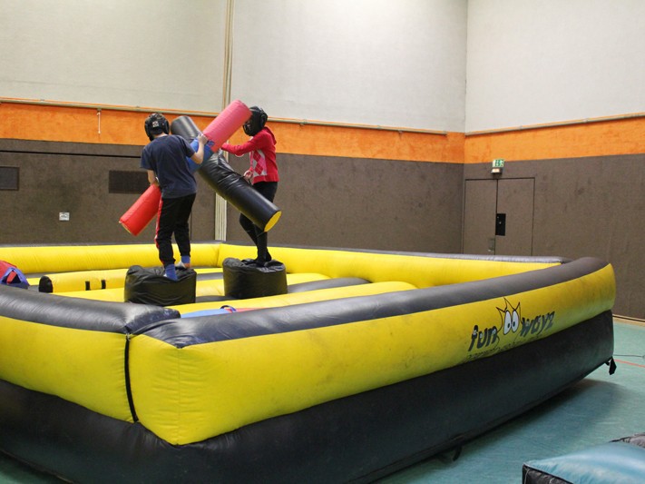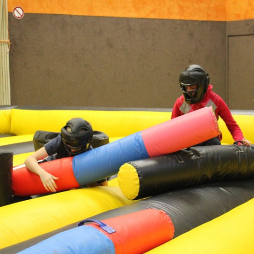 American Gladiator: kämpfen wie ein Gladiator. Ausgestattet mit Helm und Kampstick betreten die Teilnehmer die Gladiatoren Arena, die aus 2 Podesten und einem aufblasbaren Schutzkissen besteht. Jeder Spieler besteigt sein Podest und muss nun versuchen seinen Gegener mit dem gepolsterten Schläger geschickte Stupser oder Hiebe zu geben, so dass dieser sein Gleichgewicht verliert und vom Podest auf das weiche Schutzkissen fällt. Der American Gladiator verlangen ihren Spielern Geschick und Balance im Wettkampf ab. Dieses Modul ist auch bekannt aus vielen Fernsehschows.