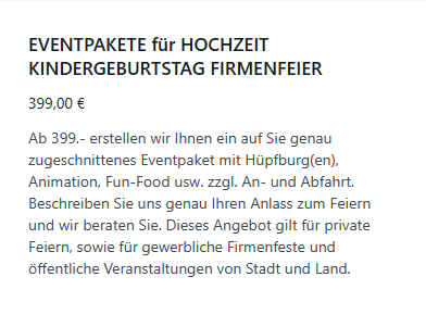 Neben unseren Eventpaketen finden Sie hier unsere aktuellen Angebote und Rabattaktionnen: