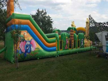 Unsere aufblasbare Riesenrutsche Jungle ist der Renner auf jeder Veranstaltung. Die bunte Luftrutsche ist stets ein kleines Highlight bei den Kids und ein schöne Alternative oder Ergänzung zur klassischen Hüpfburg oder unserem passenden Hindernisparocours Ebenso ist die Rutsche ein garantierter Blickfang und Publikumsmagnet, die kleinen Besucher Ihrer Veranstaltung werden nicht genug bekommen und sich immer wieder erneut anstellen. Mit der Riesenrutsche holen Sie sich ein Aktionsgerät mit hohem Spaß-Faktor auf Ihren Event.